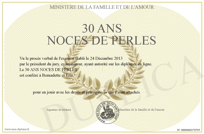 Envoyez par email votre 30 ANS NOCES DE PERLES personalisé