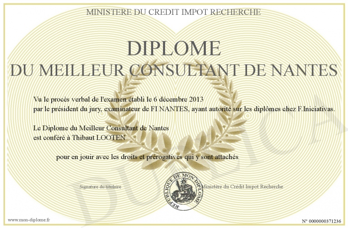 Envoyez par email votre Diplôme du Meilleur Consultant de Nantes personalisé
