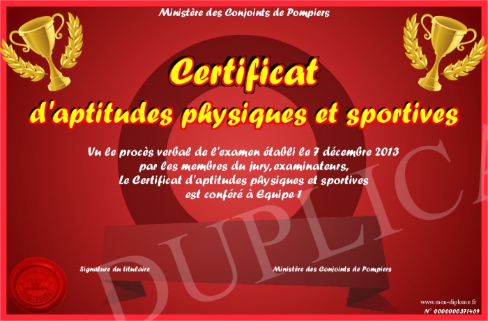 Envoyez par email votre Certificat d'aptitudes physiques et sportives personalisé