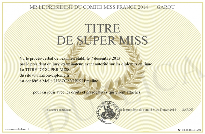 Envoyez par email votre TITRE DE SUPER MISS personalisé