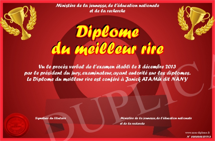 Envoyez par email votre Diplôme du meilleur rire personalisé