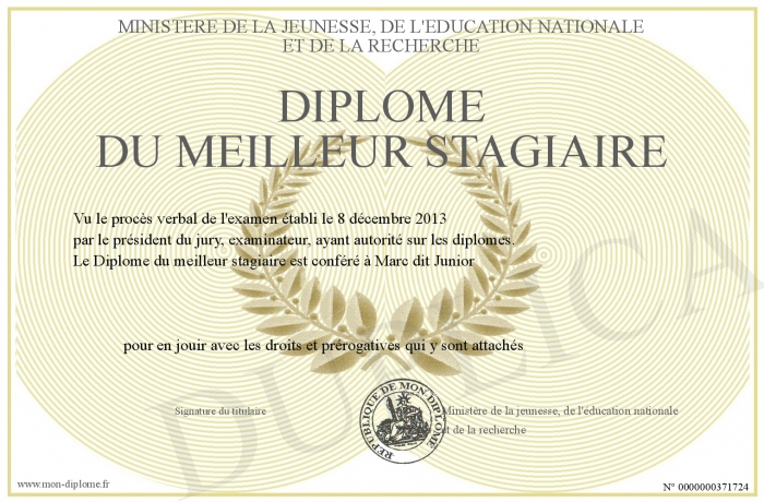 Envoyez par email votre Diplôme du meilleur stagiaire personalisé