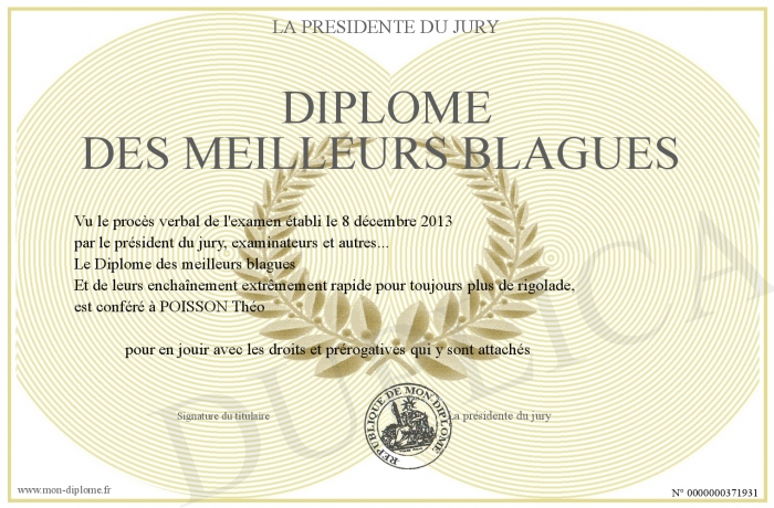 Envoyez par email votre Diplôme des meilleurs blagues personalisé