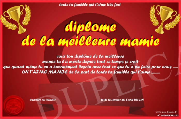 Envoyez par email votre diplome de la meilleure mamie personalisé