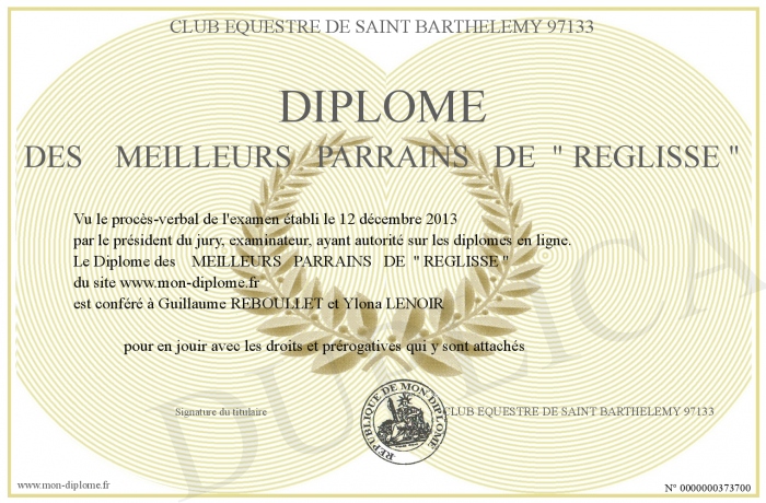 Envoyez par email votre Diplôme des MEILLEURS PARRAINS DE - REGLISSE - personalisé