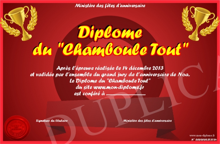 Envoyez par email votre Diplôme du -Chamboule Tout- personalisé
