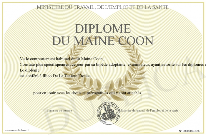 Envoyez par email votre Diplome du Maine Coon personalisé