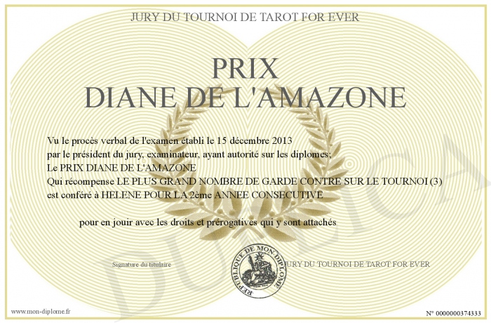 Envoyez par email votre PRIX DIANE DE L'AMAZONE personalisé
