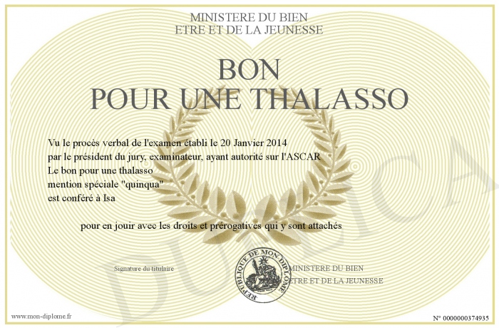 Envoyez par email votre BON POUR UNE THALASSO personalisé