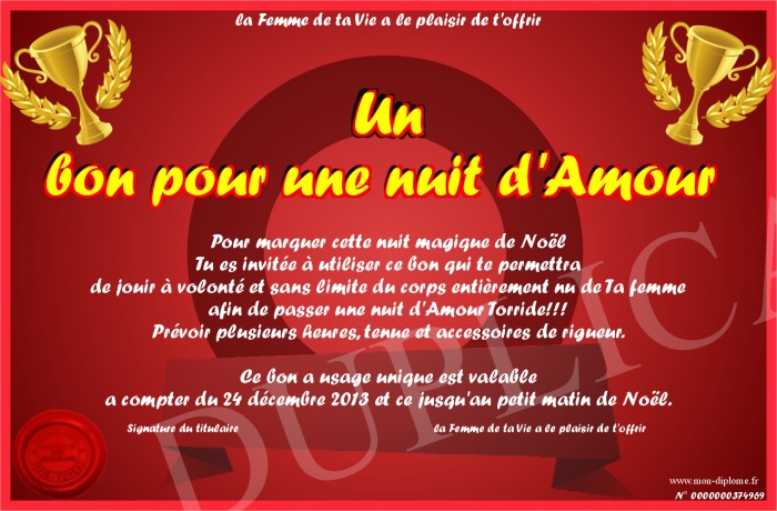 Envoyez par email votre Un bon pour une nuit d'Amour personalisé