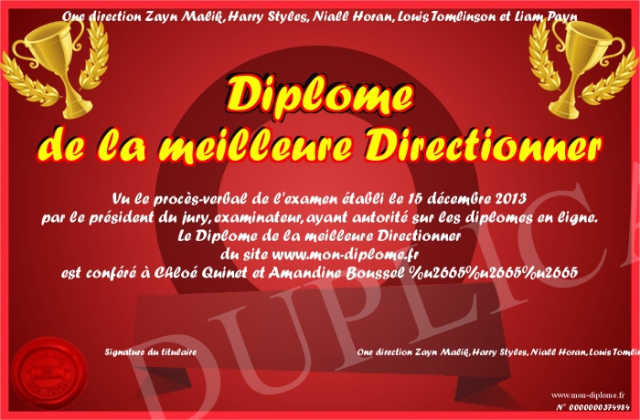 Envoyez par email votre Diplome de la meilleure Directionner personalisé