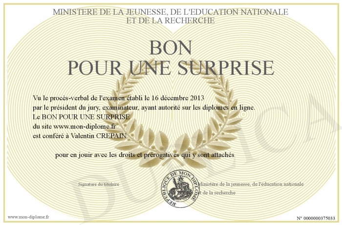 Envoyez par email votre BON POUR UNE SURPRISE personalisé