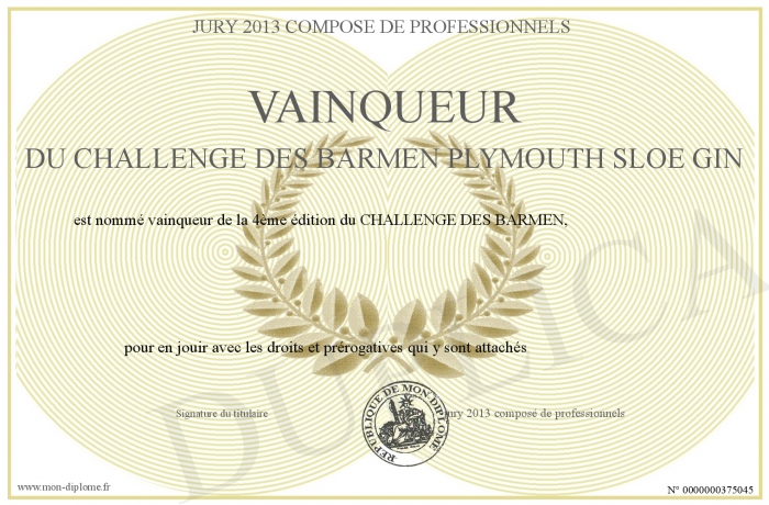 Envoyez par email votre Vainqueur du CHALLENGE DES BARMEN PLYMOUTH SLOE GIN personalisé