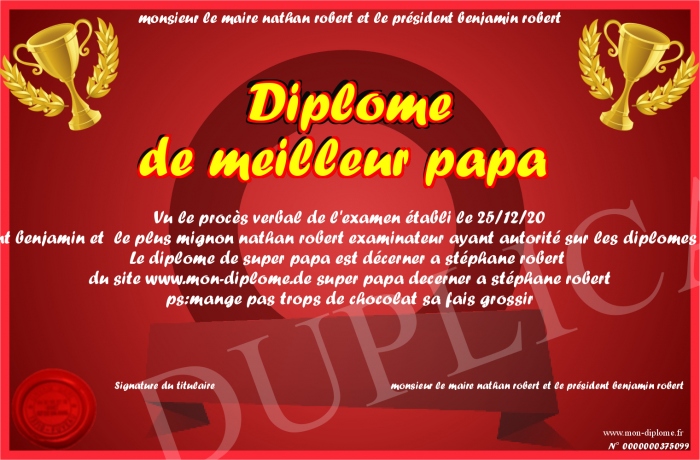 Envoyez par email votre Diplôme de meilleur papa personalisé