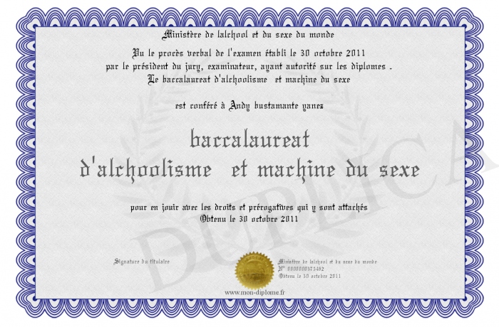 Envoyez par email votre baccalaureat d'alchoolisme et machine du sexe personalisé