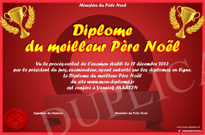 Envoyez par email votre Diplôme du meilleur Père Noël personalisé