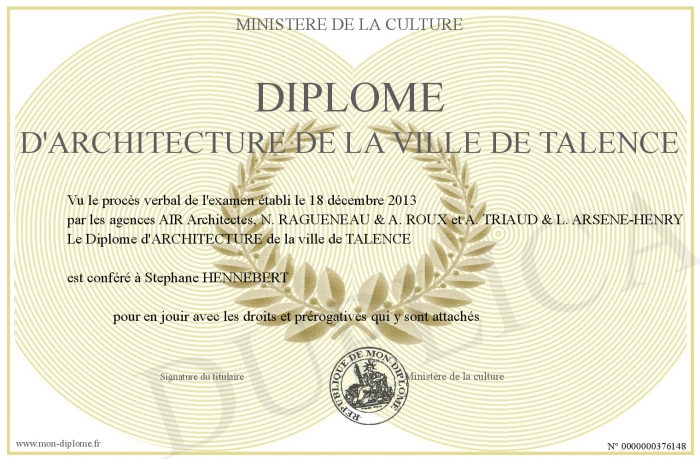 Envoyez par email votre Diplôme d'ARCHITECTURE de la ville de TALENCE personalisé