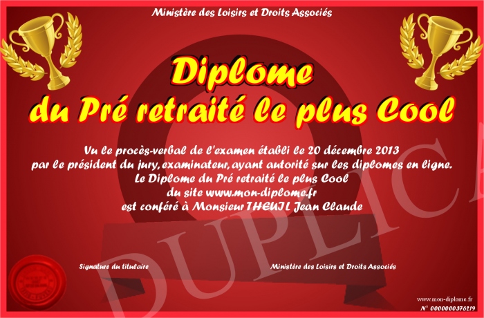 Envoyez par email votre Diplôme du Pré retraité le plus Cool personalisé