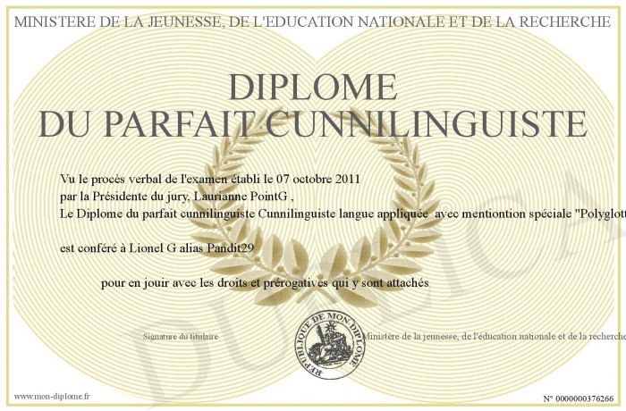 Envoyez par email votre Diplôme du parfait cunnilinguiste personalisé