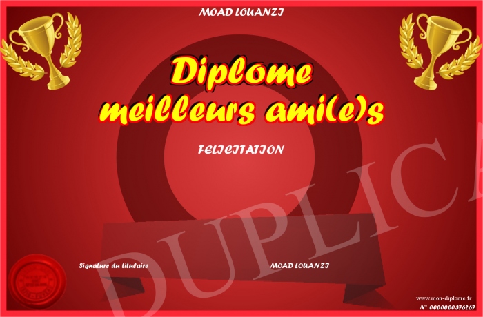 Envoyez par email votre Diplôme meilleurs ami(e)s personalisé