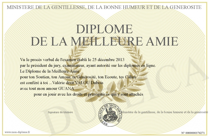 Envoyez par email votre Diplôme de la Meilleure Amie personalisé