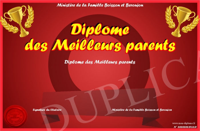 Envoyez par email votre Diplôme des Meilleurs parents personalisé