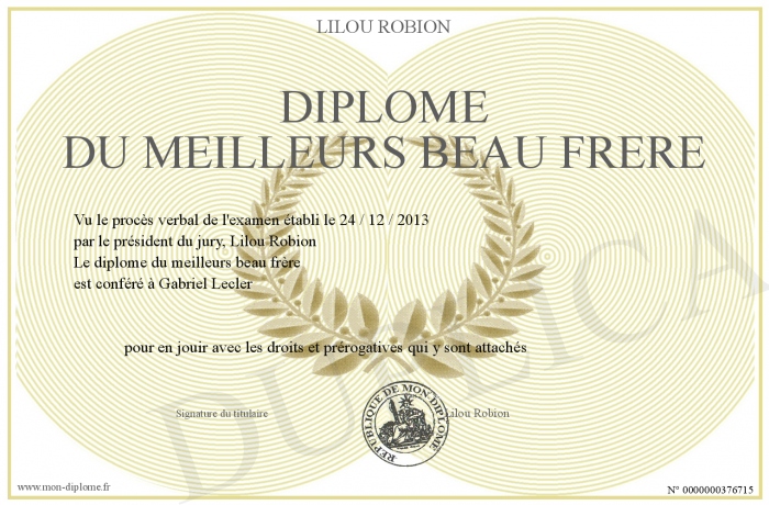 Envoyez par email votre Diplôme du meilleurs beau frère personalisé