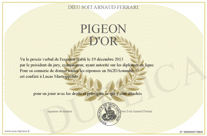 Envoyez par email votre Pigeon D'or personalisé