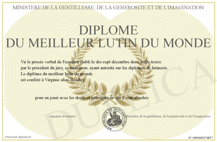 Envoyez par email votre Diplôme du meilleur lutin du monde personalisé