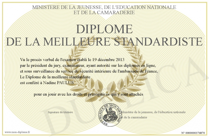 Envoyez par email votre Diplôme de la meilleure standardiste personalisé