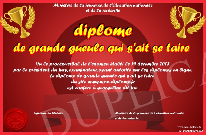 Envoyez par email votre diplome de grande gueule qui s'ait se taire personalisé