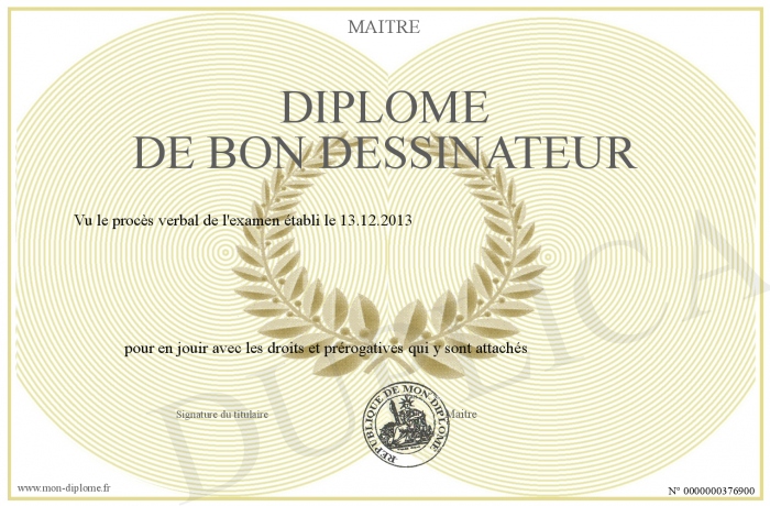 Envoyez par email votre Diplôme de bon dessinateur personalisé