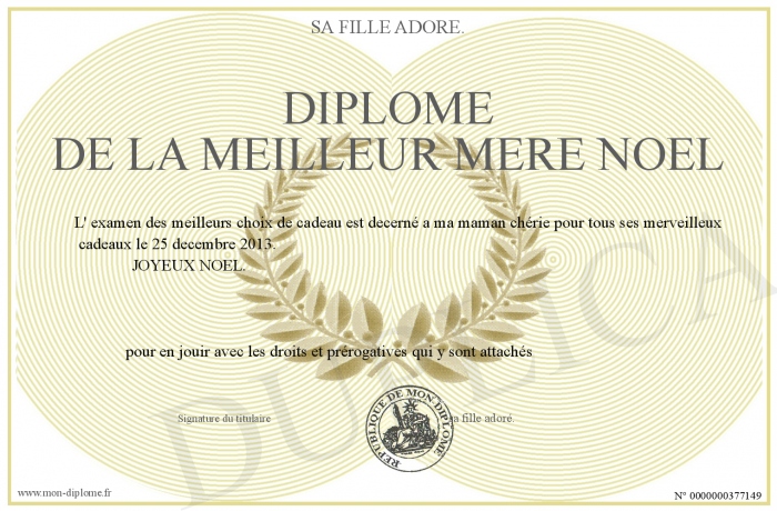Envoyez par email votre Diplôme de la meilleur mère noel personalisé