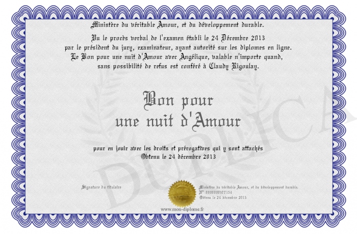 Envoyez par email votre Bon pour une nuit d'Amour personalisé
