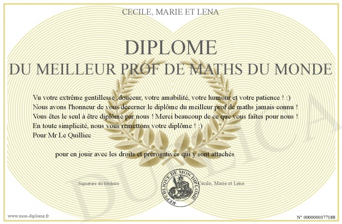 Envoyez par email votre Diplôme du meilleur prof de maths du monde personalisé