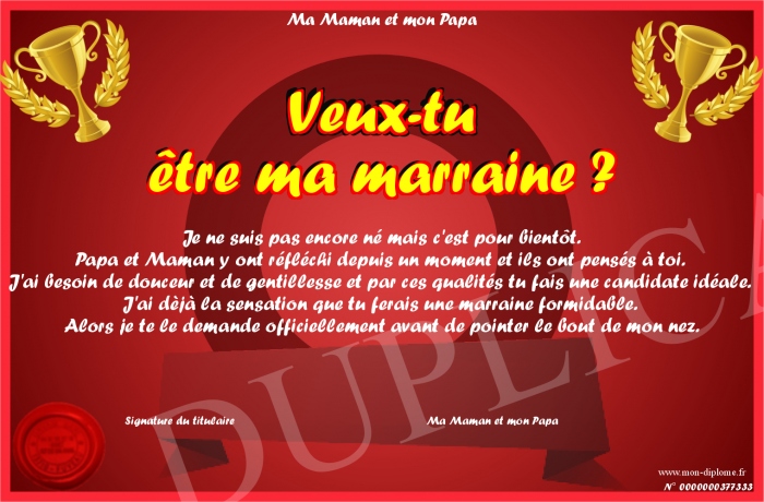 Envoyez par email votre Veux-tu être ma marraine ? personalisé