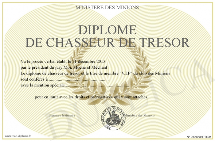 Envoyez par email votre diplôme de chasseur de trésor personalisé