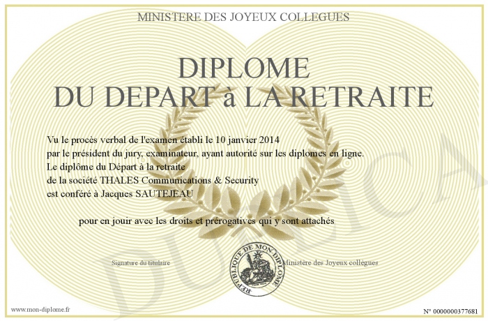 Envoyez par email votre Diplôme du Départ à La Retraite personalisé