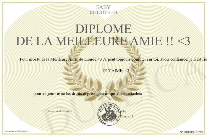 Envoyez par email votre Diplôme de la Meilleure Amie !! -3 personalisé