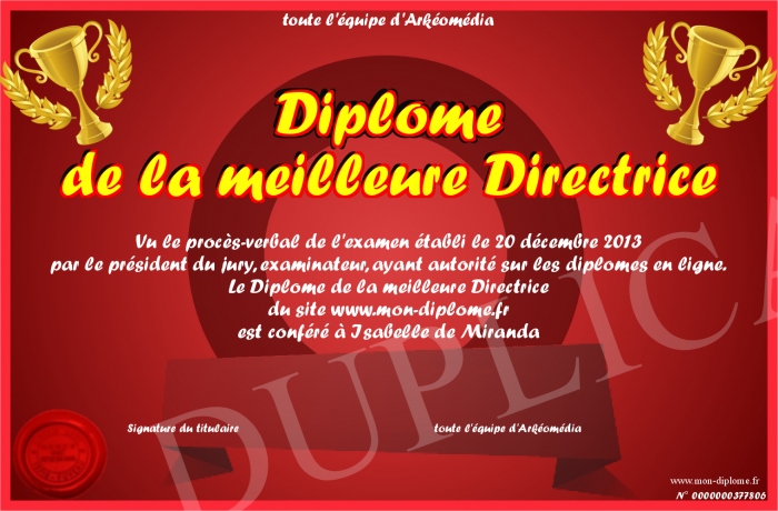 Envoyez par email votre Diplôme de la meilleure Directrice personalisé
