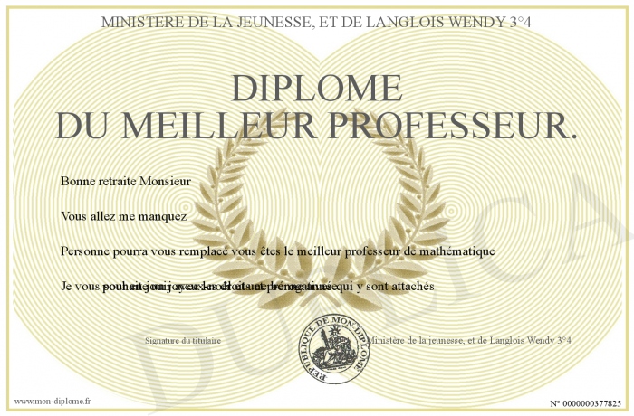 Envoyez par email votre Diplôme du meilleur professeur. personalisé