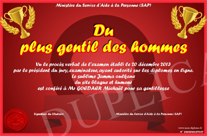 Envoyez par email votre Du plus gentil des hommes personalisé
