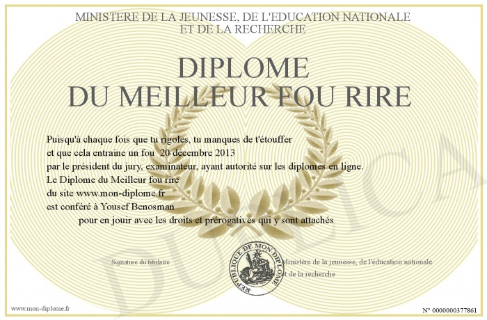 Envoyez par email votre Diplôme du Meilleur fou rire personalisé