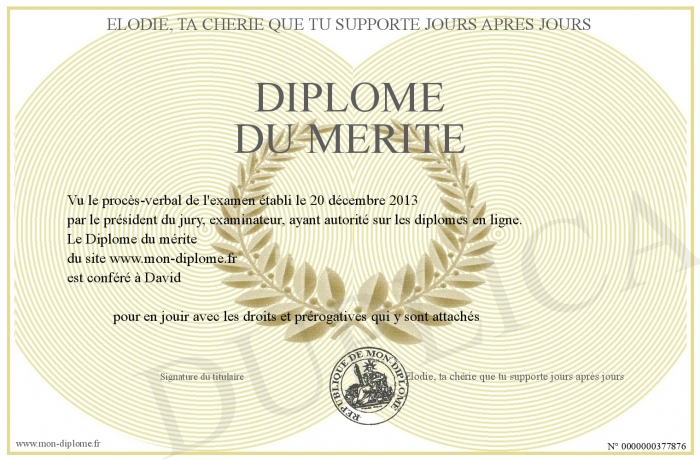 Envoyez par email votre Diplôme du mérite personalisé