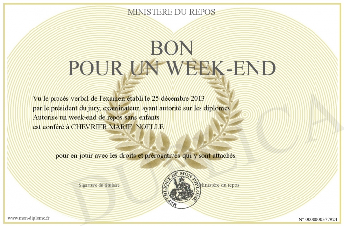 Envoyez par email votre Bon pour un week-end personalisé