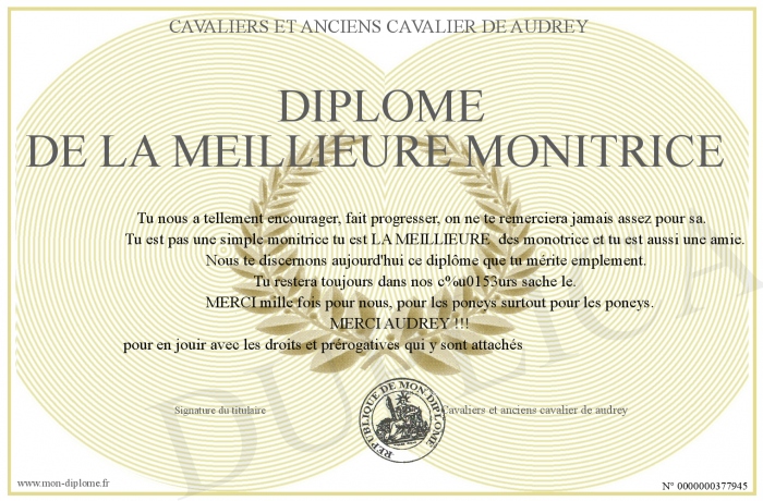 Envoyez par email votre Diplôme de la meillieure monitrice personalisé