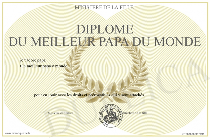 Envoyez par email votre Diplôme du meilleur papa du monde personalisé