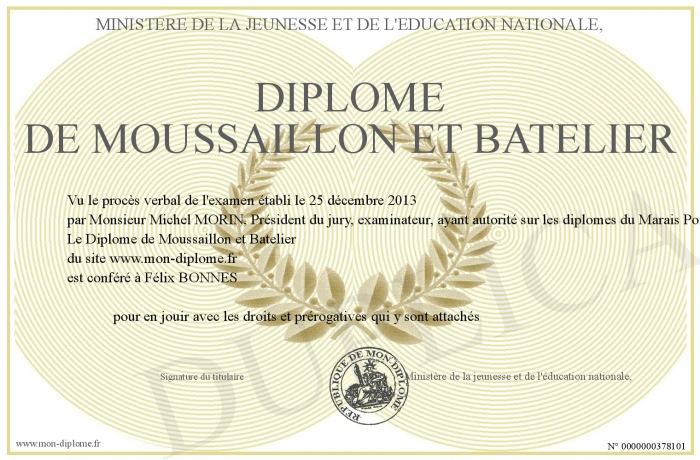 Envoyez par email votre Diplôme de Moussaillon et Batelier personalisé