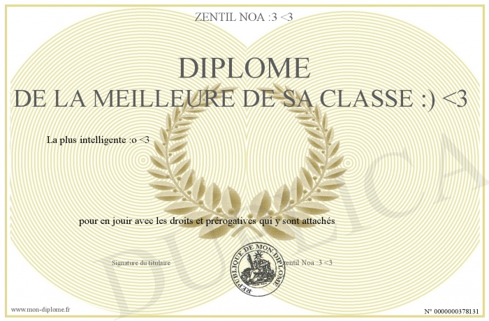 Envoyez par email votre Diplôme de la meilleure de sa classe :) -3 personalisé