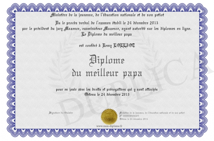 Envoyez par email votre Diplome du meilleur papa personalisé